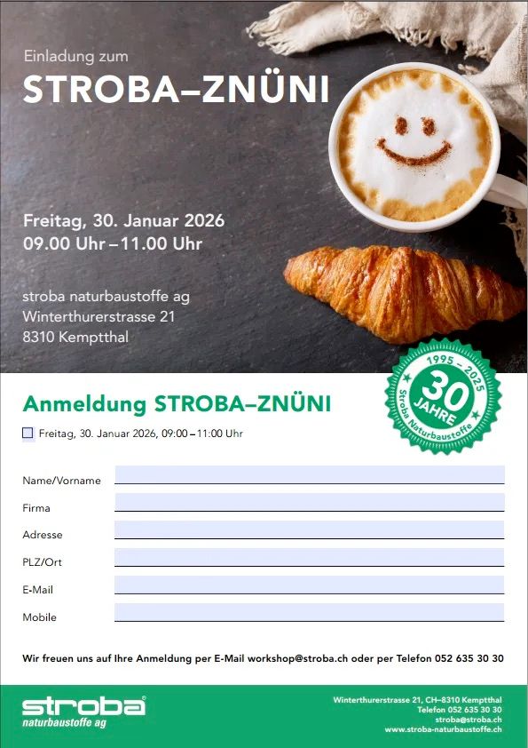 Ort: stroba naturbaustoffe ag, Winterthurerstrasse 21, 8310 Kemptthal