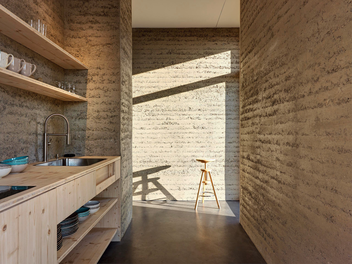 Das eingeschossige Gebäude wurde aus vorgefertigten Stampflehmelementen von LehmTonErde hergestellt. Alle Wände des Neubaus bestehen aus massiven Stampflehmelementen. Der Raum wird vielfältig genutzt, unter anderem als Atelier, für Kunstausstellungen, als Proberaum für Musiker und für die Durchführung von Seminaren und Workshops. Die hervorragende Raumklimatisierung wird von allen Nutzern bestätigt, und die Farbgebung und Struktur der Wände verleihen dem Raum einen äusserst angenehmen Eindruck.